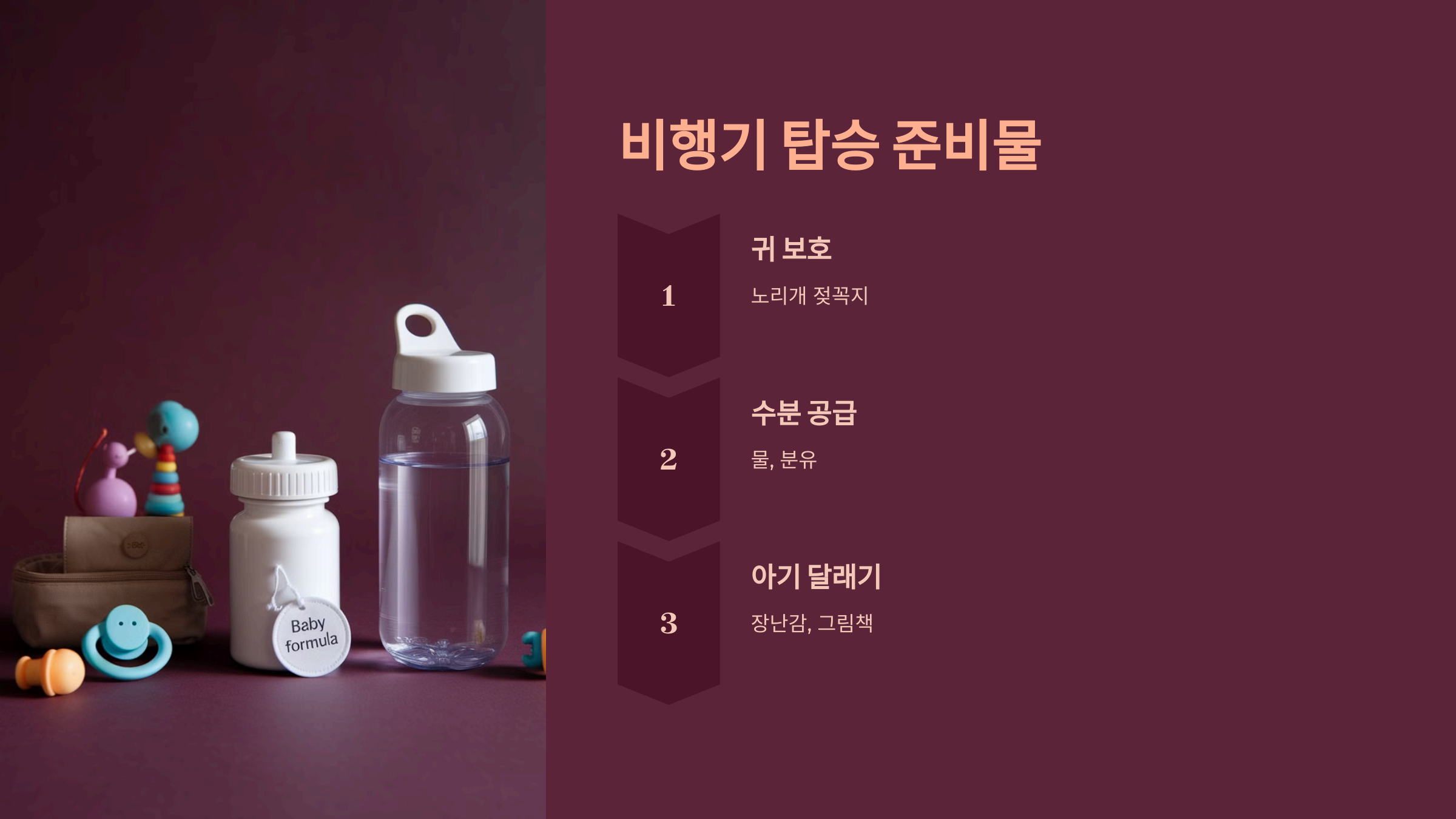 • 이착륙 시 귀가 아플 수 있으므로 노리개 젖꼭지, 물, 분유 준비.